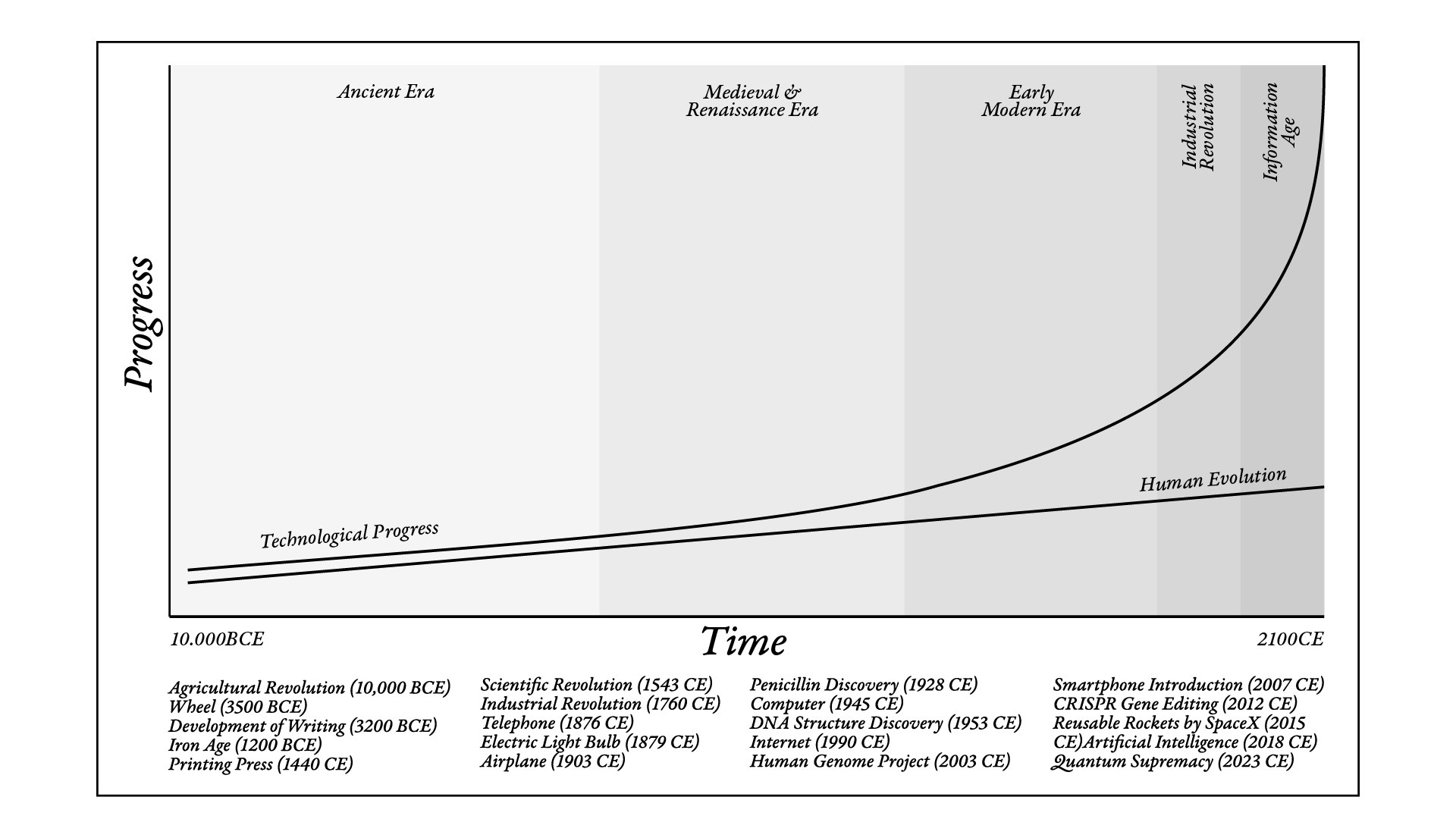 The pace of innovation is dizzying. Breakthroughs that used to take centuries now happen in decades, or even years. The problem lies in the mismatch between the linear evolution of the human brain and the exponential curve of technological progress. As these two trajectories diverge, the gap between them grows wider, creating a future where small errors or malevolent actions could compromise entire systems before the average person even understands what's happening. Companies, in their race to release AI, new apps and software, are focusing on progress at the expense of ethics and safety. This relentless pursuit leaves little time to ask: Should we be doing this? What are the consequences? Who benefits, and who gets left behind? By ignoring the alignment between human capabilities and technological advancements, we risk building a future where evolution itself could be derailed.